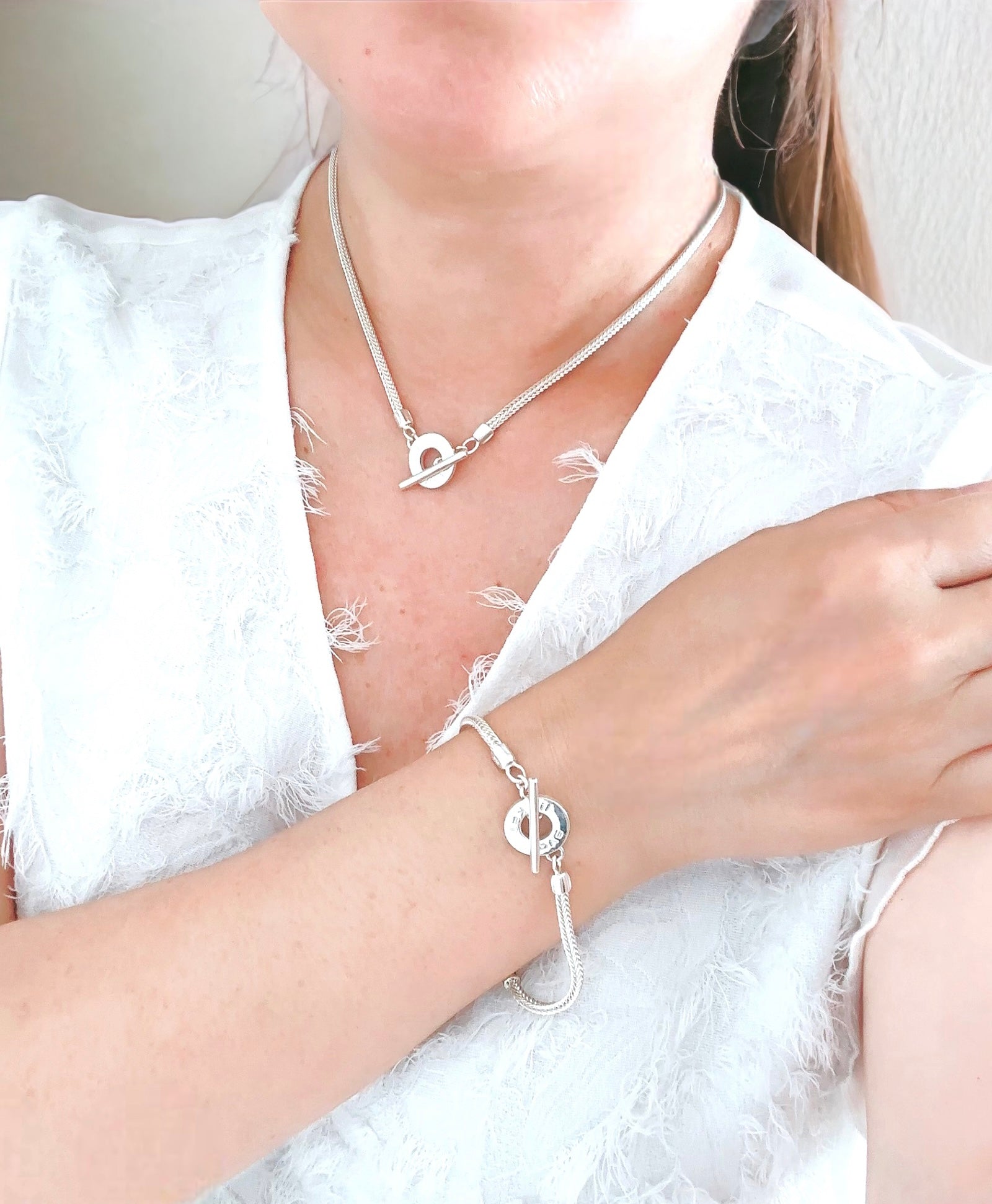 スターリングシルバーを贅沢に使用した高級感あふれるブレスレット。
