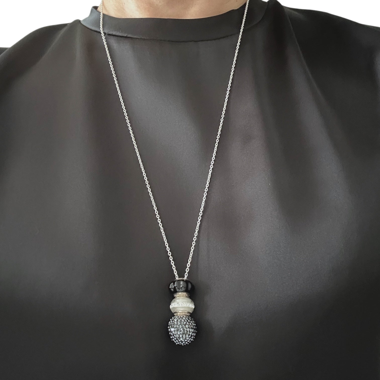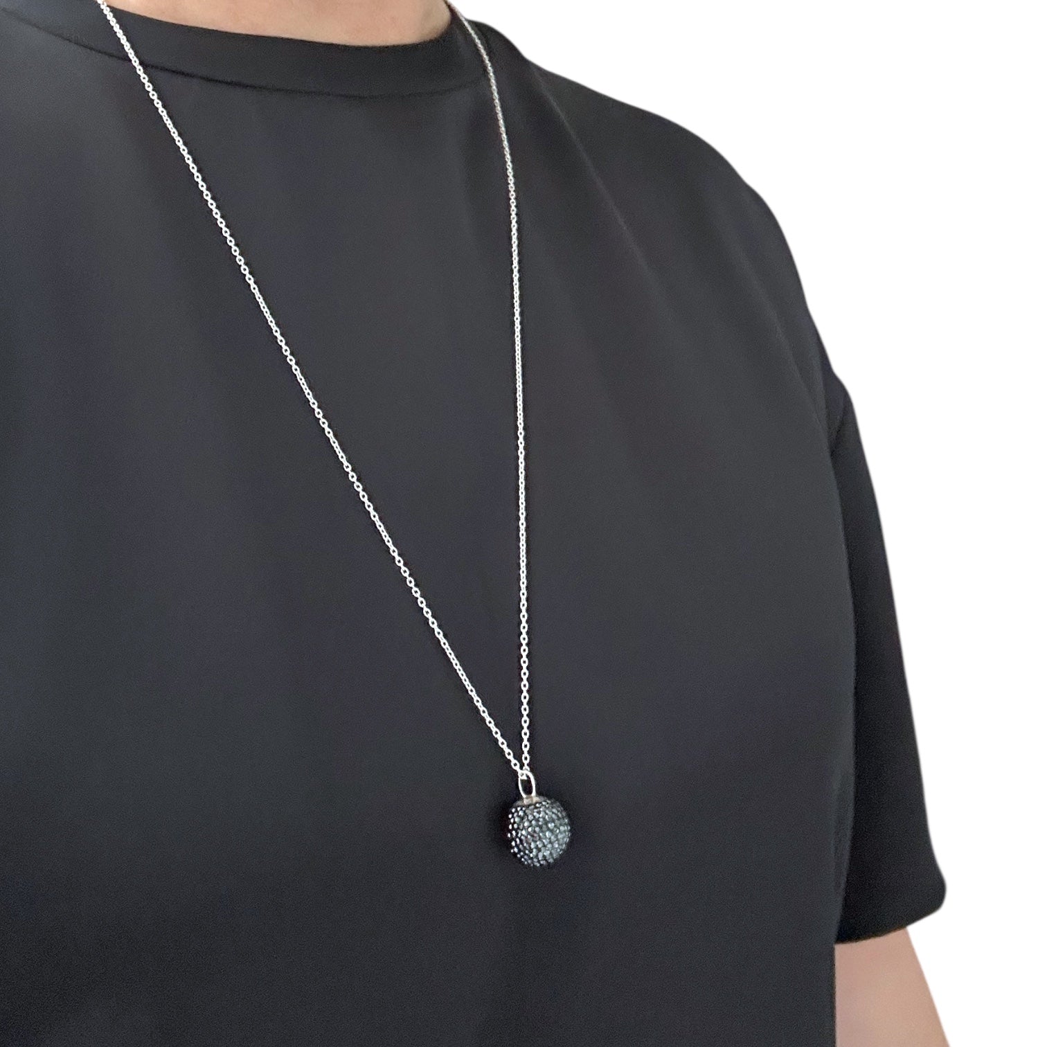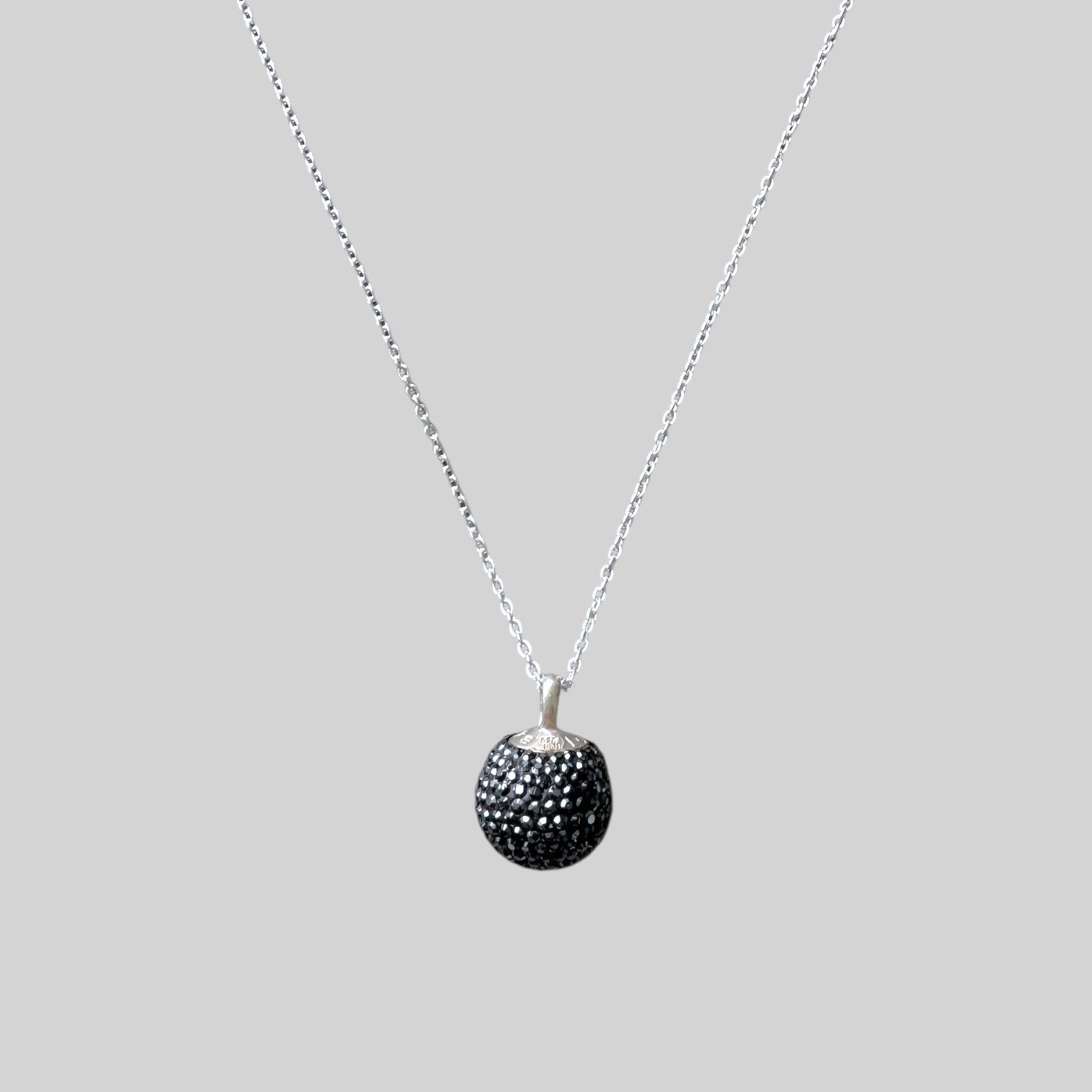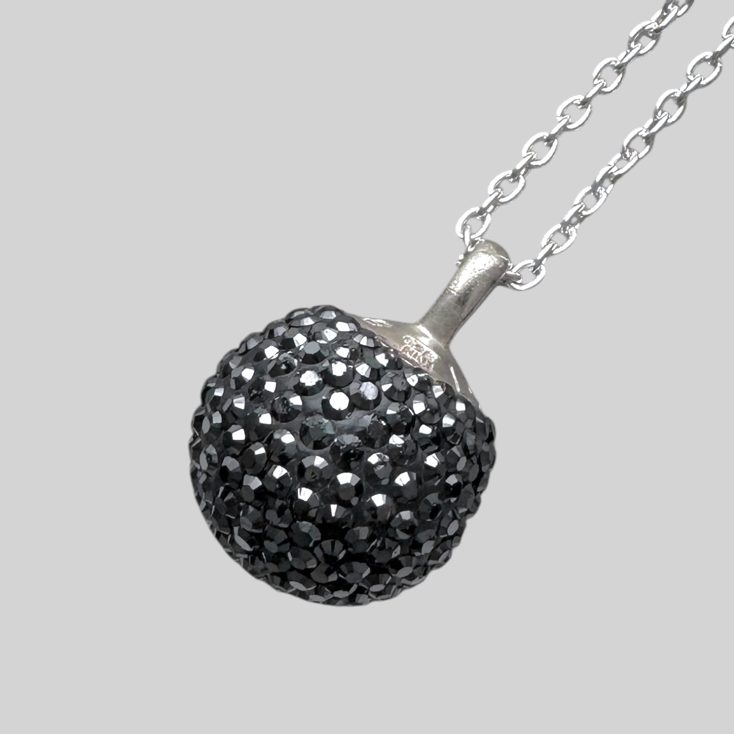 全面にファインクリスタルを敷き詰めたボール型チャームがトップに輝くネックレス。