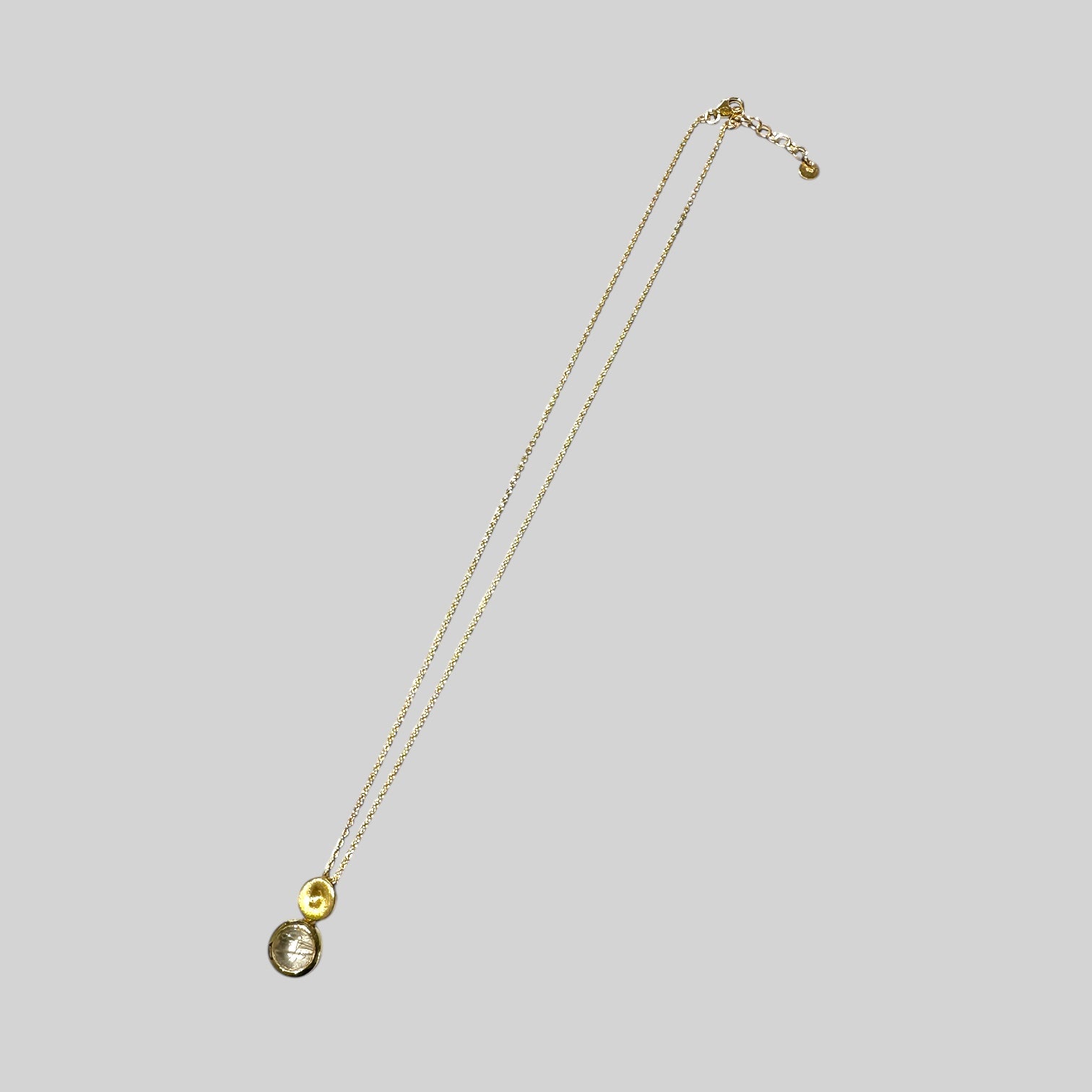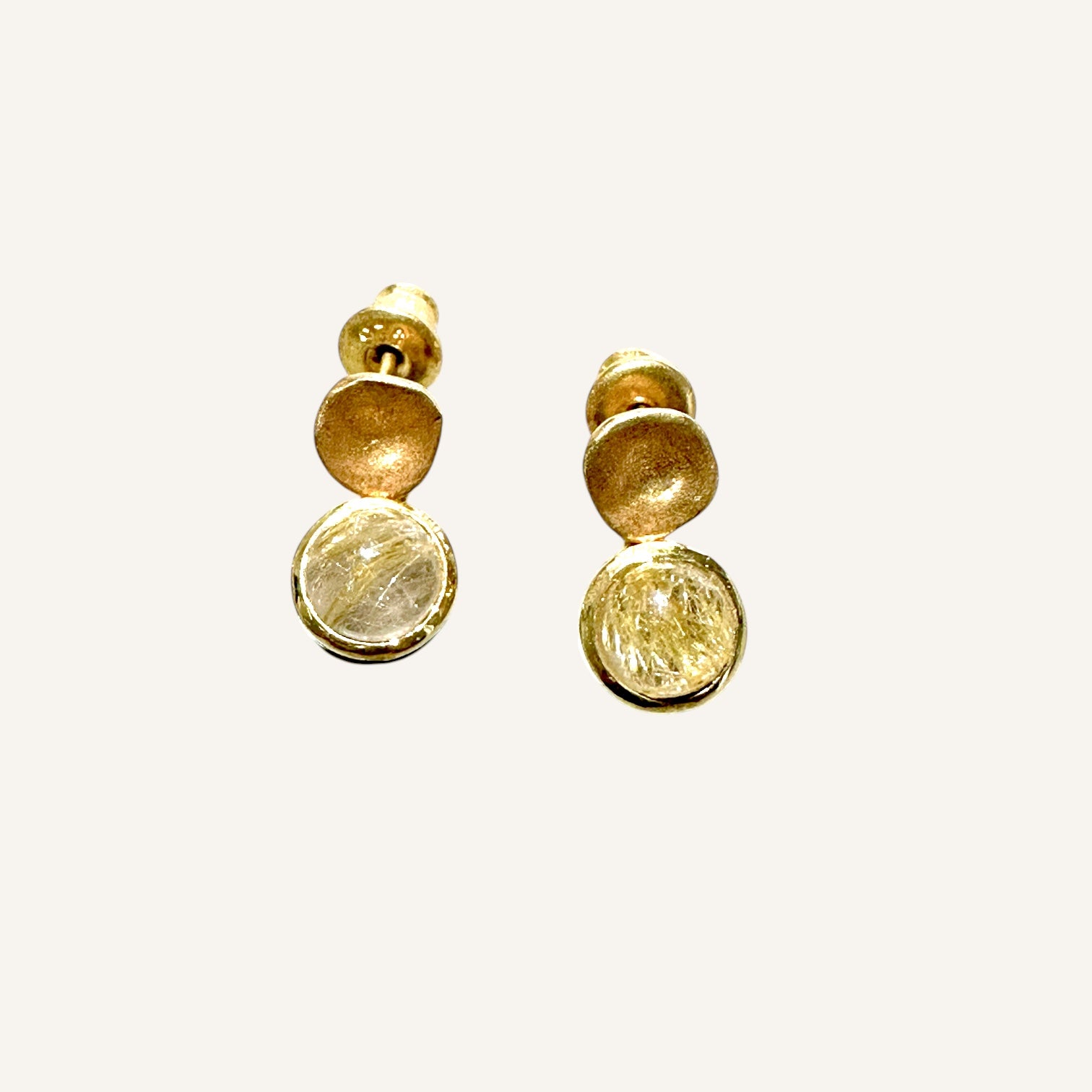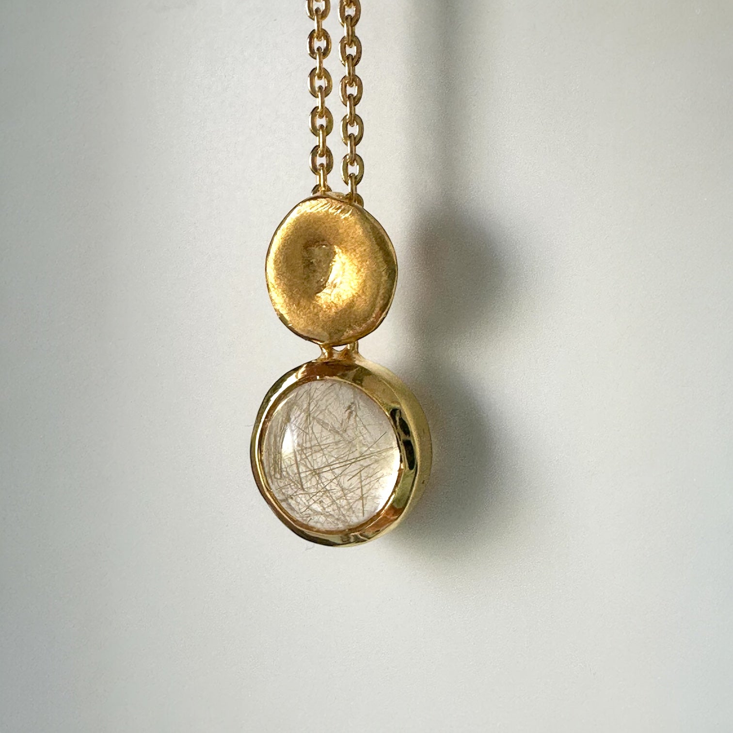 弾け散るゴールドラインとその光を柔らかく包み込むマットゴールドのコンビネーションが美しい 〈リフレクション・チャンス〉 人気のルチルクウォーツは針状の金糸模様が特徴。天然石ならではの自分だけのラッキーゴールドを身につけたらたくさんのチャンスを掴まえられそう!