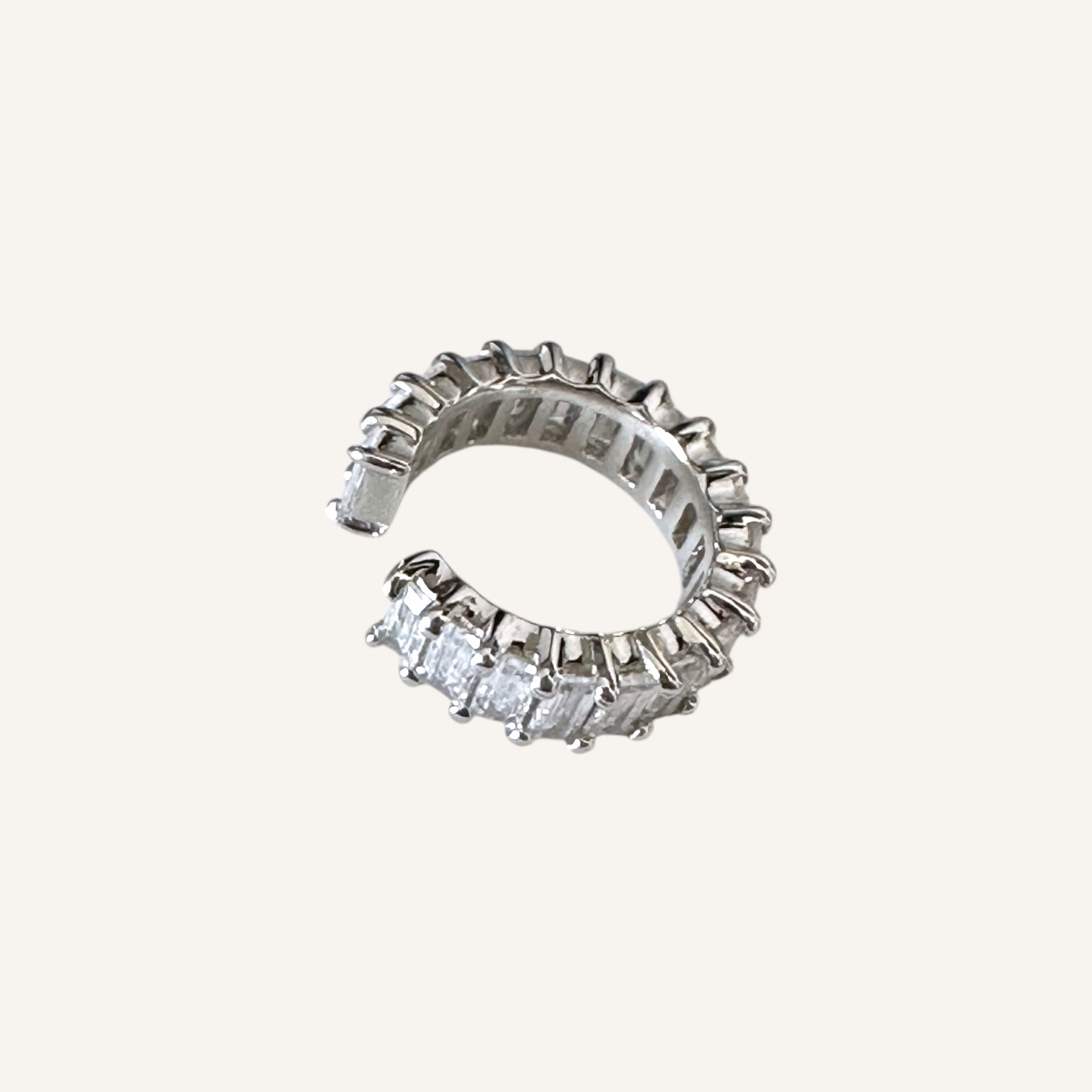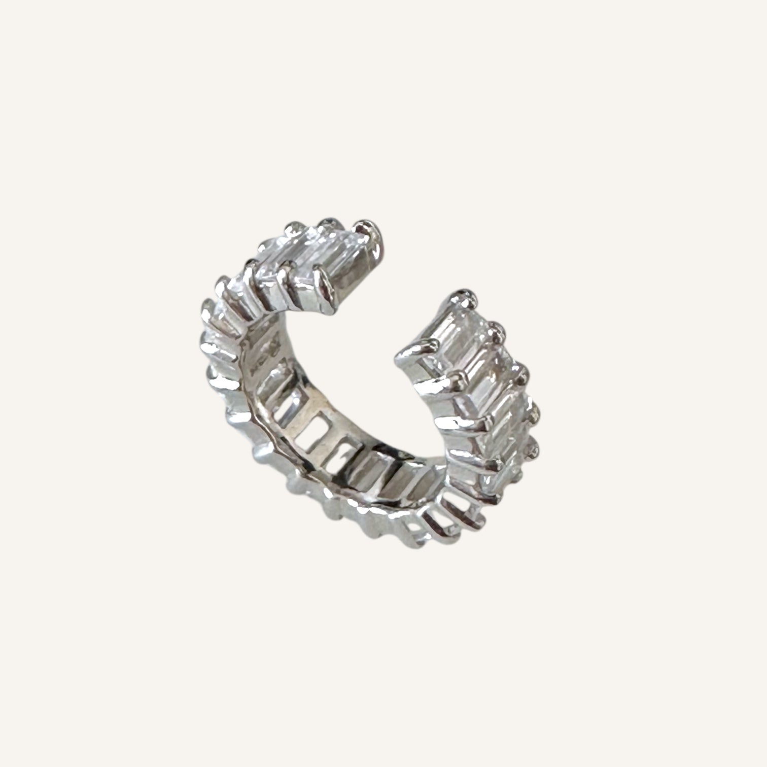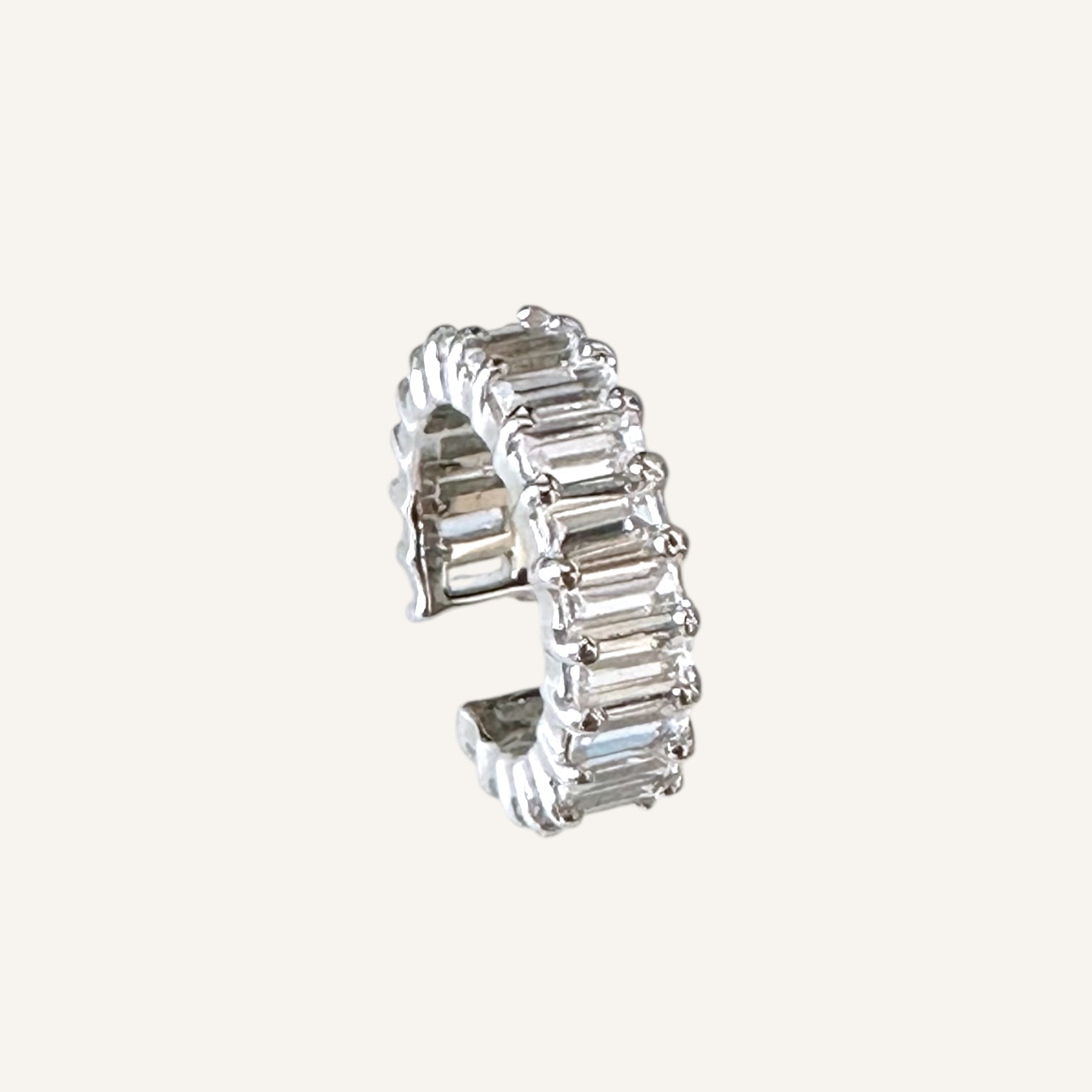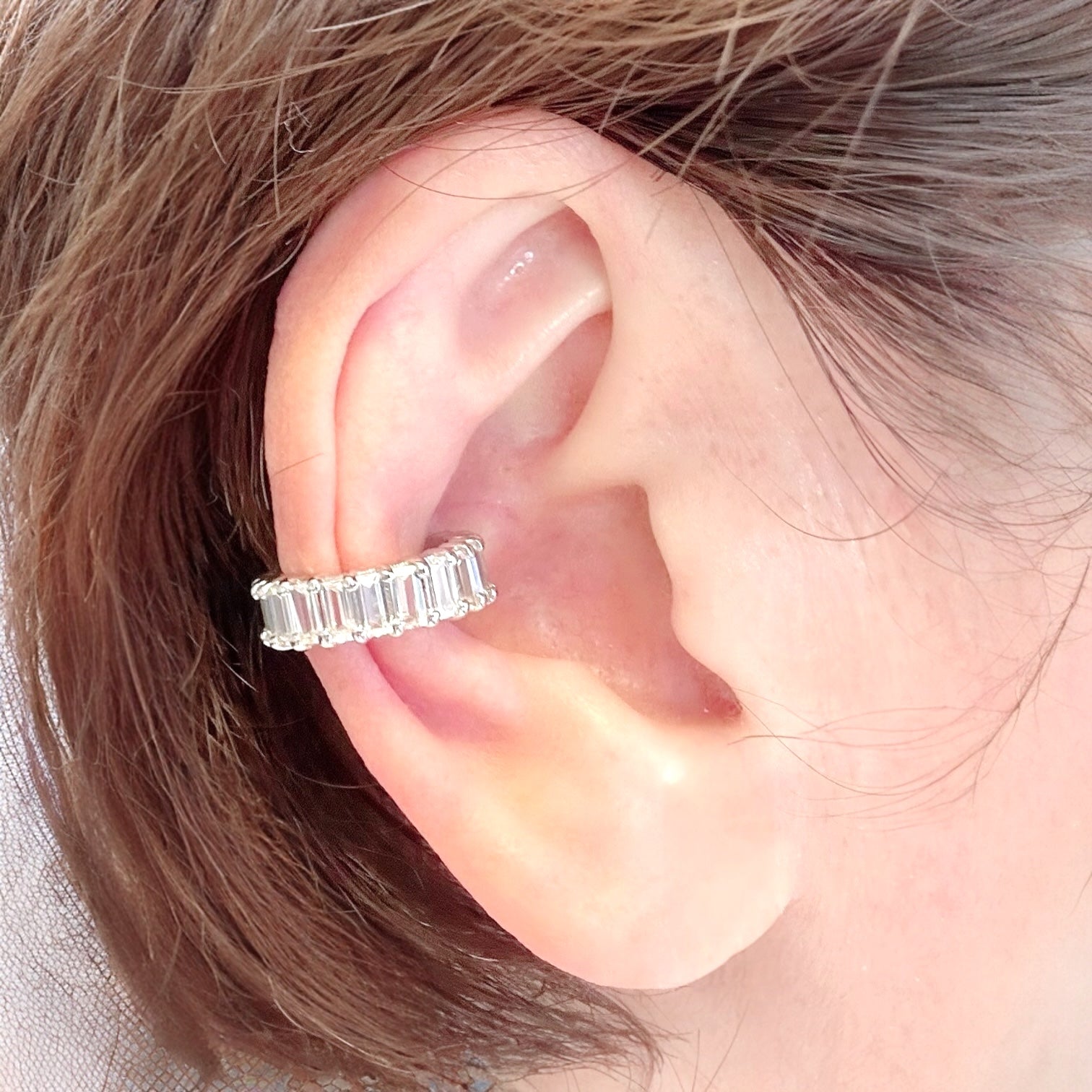 ちょっと珍しいスクエアーカットのクリスタルが連なる存在感たっぷりのイヤーカフ