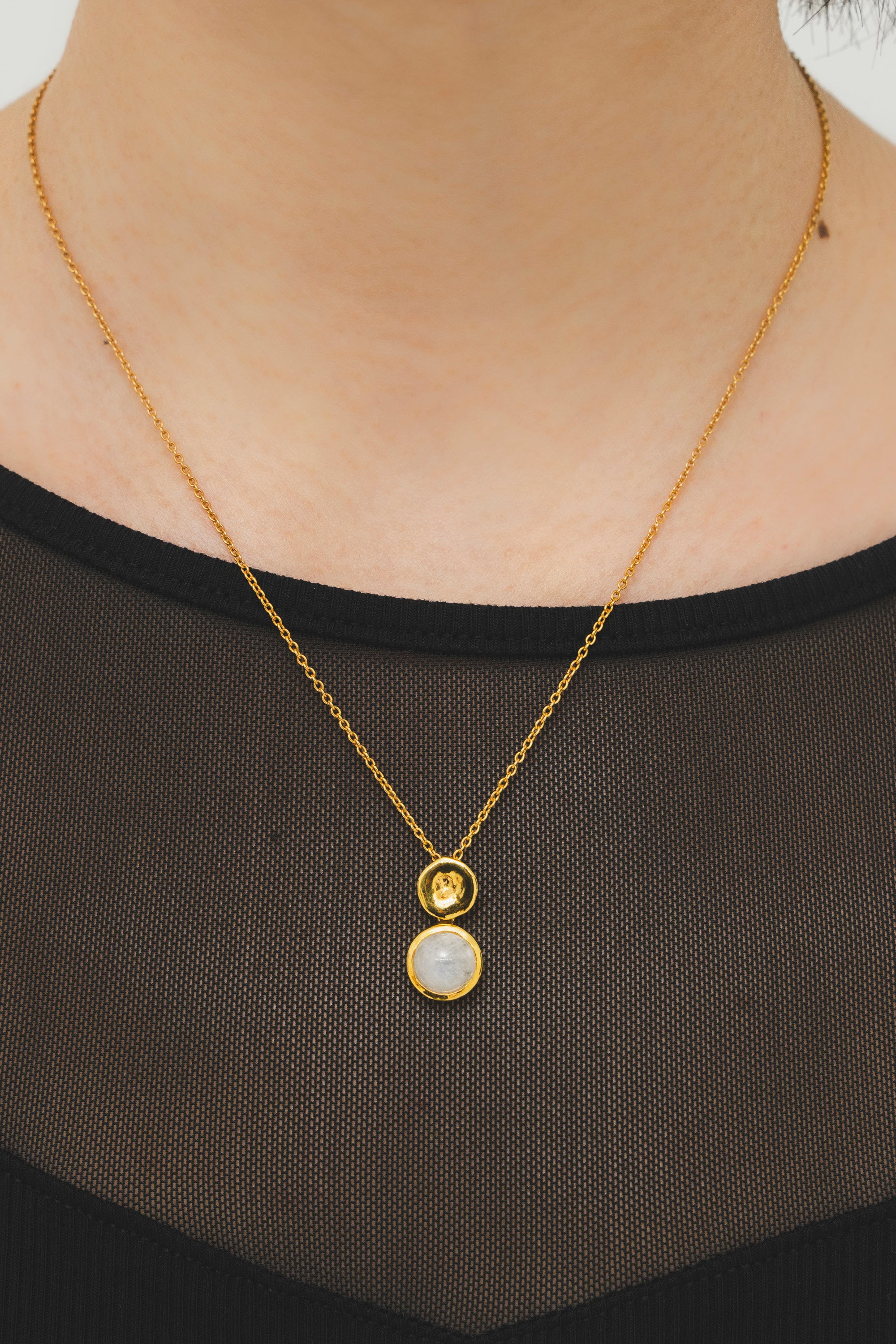 優しい乳白色の天然石 ムーンストーンと華やかなシャイニーゴールドとの対比が美しい 〈リフレクション・ハーモニー〉