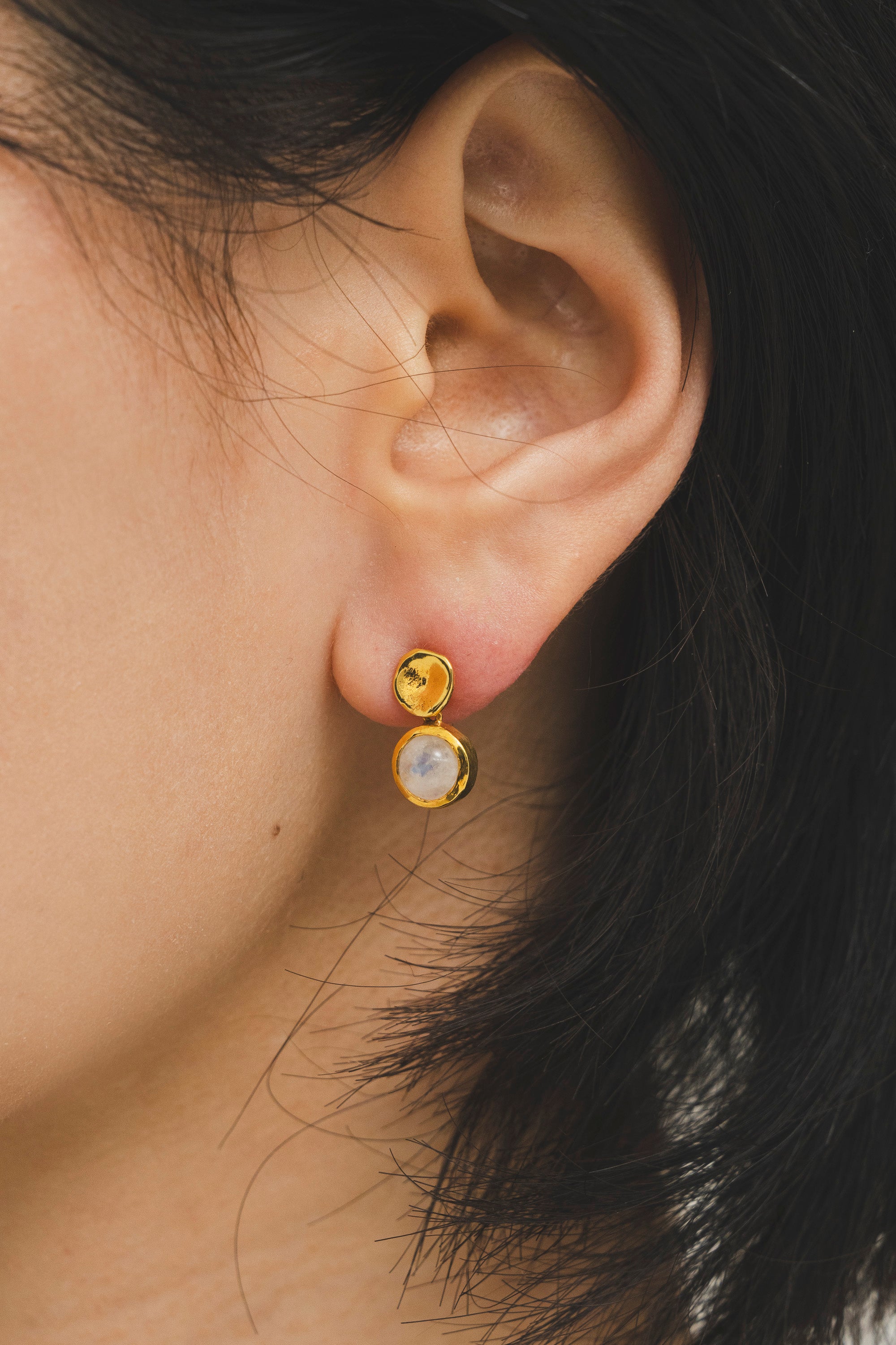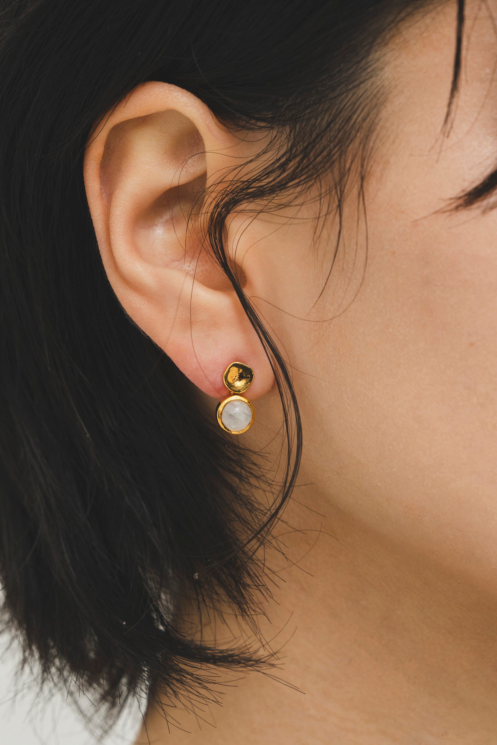 優しい乳白色の天然石 ムーンストーンと華やかなシャイニーゴールドとの対比が美しい 〈リフレクション・ハーモニー〉
