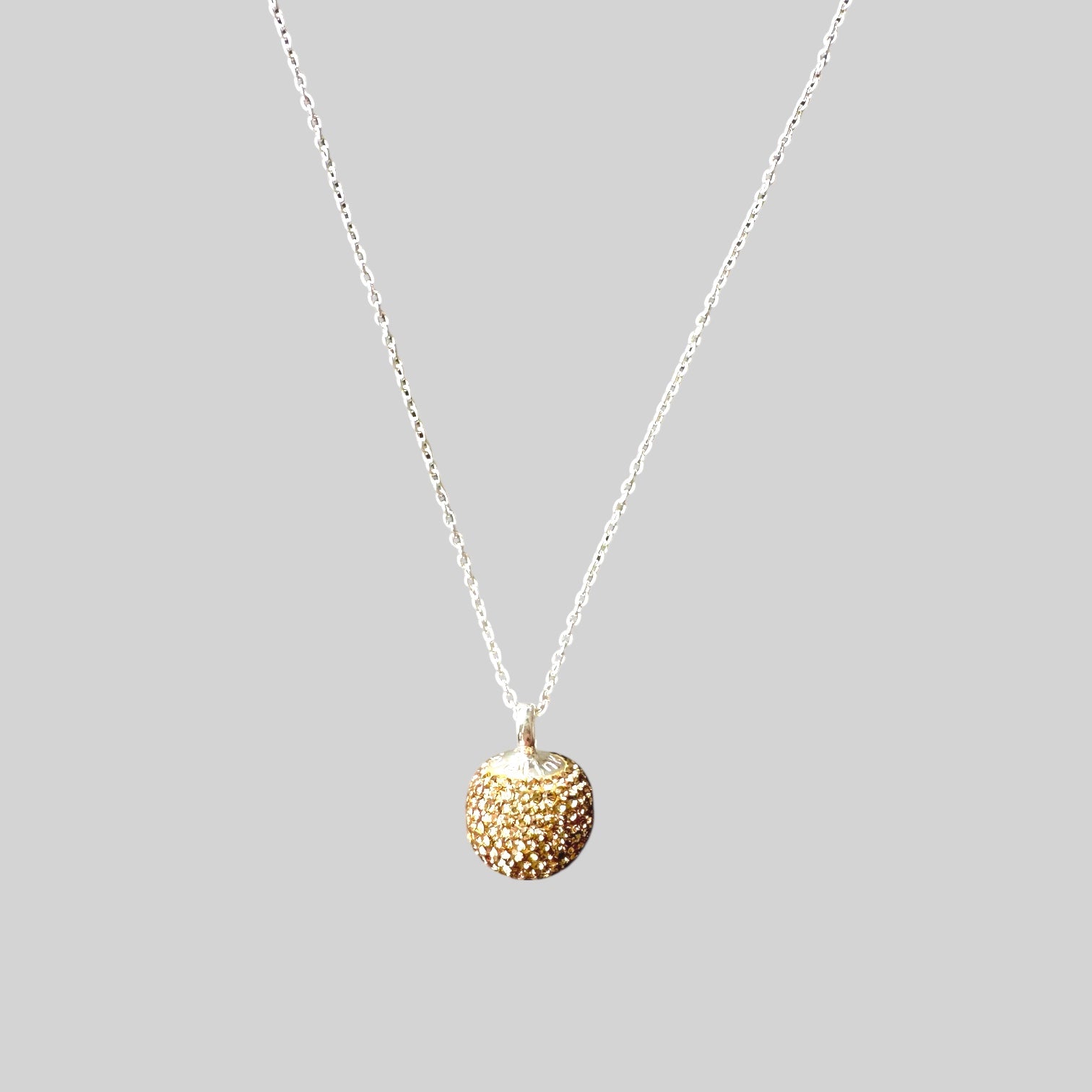 全面にファインクリスタルを敷き詰めたボール型チャームがトップに輝くネックレス。
