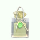 The soft green peeking out from the shopper makes this a very cute gift wrapping.