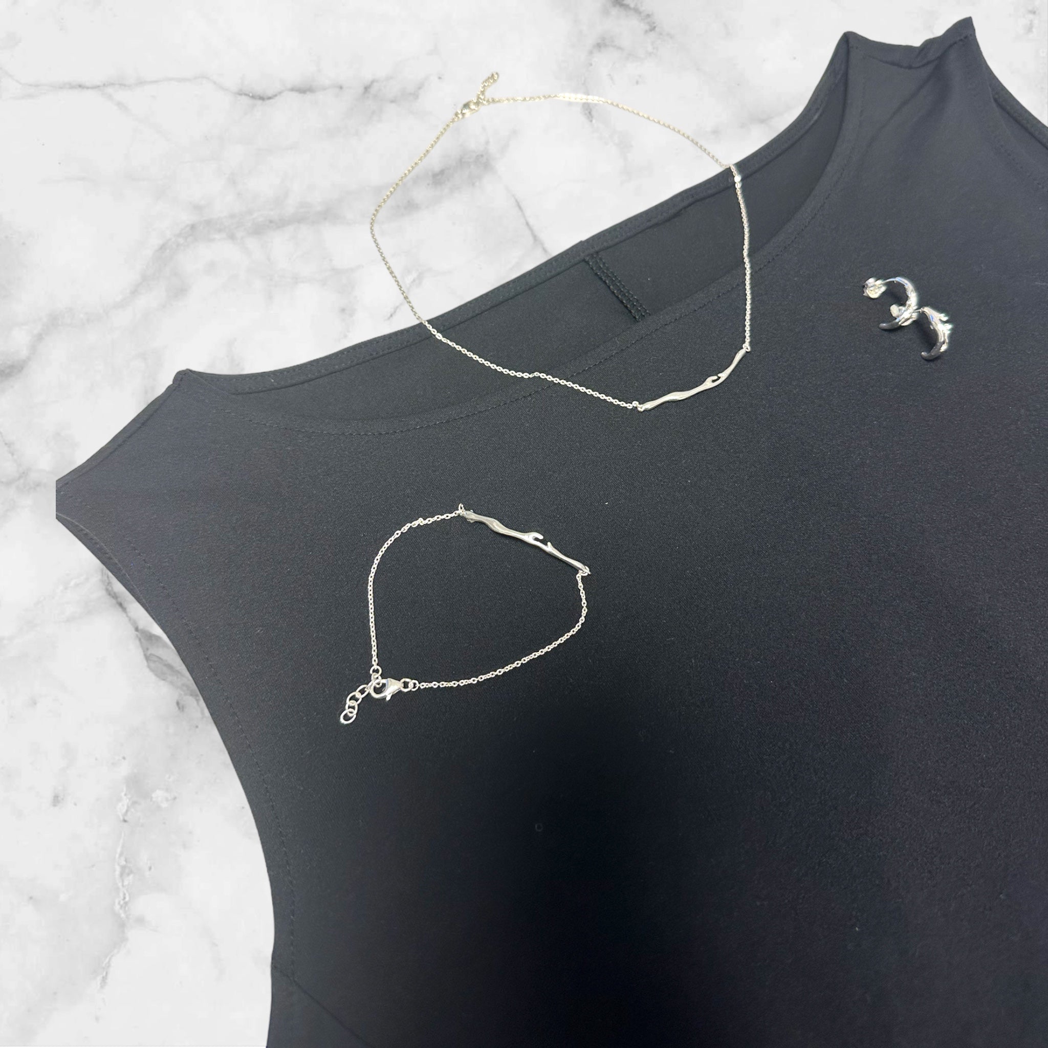 繊細なチェーンにシルバー製の珊瑚モチーフを繋いださりげないのに優しい動きのあるネックレスです。首もとでさりげなく光る細身の珊瑚モチーフが女性らしさを演出してくれます。