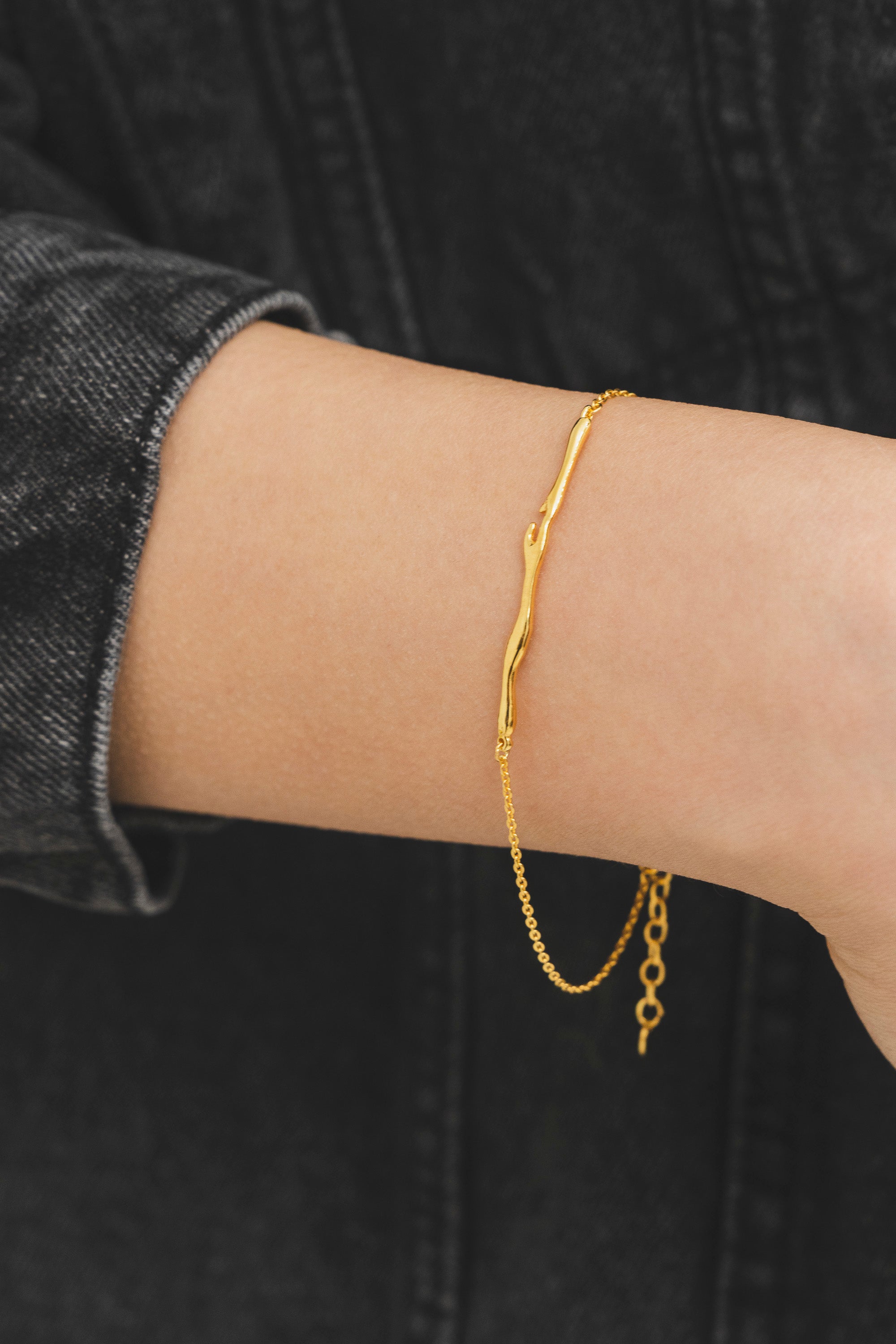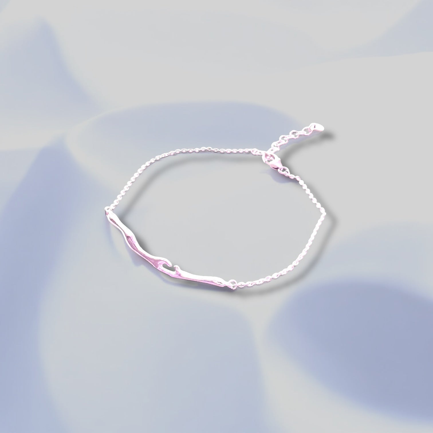 繊細なチェーンとシルバー珊瑚モチーフを繋いだ、さりげないのに優しい動きのあるブレスレットです。光を集めるスターリングシルバーと細身の珊瑚モチーフが女性らしさを演出してくれます。